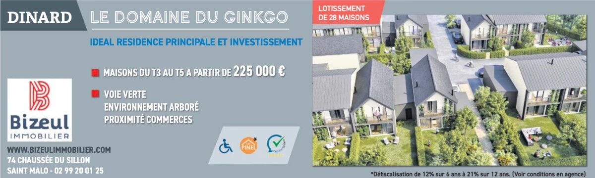 Situé au 19-21 rue de la Ville es Meniers, dans le quartier paisible de La Saudrais à Dinard, le programme Le Domaine du Ginkgo – Maisons propose 28 maisons individuelles neuves de type 3 à type 5, offrant des surfaces généreuses de 77 à 120 m². 🏡
