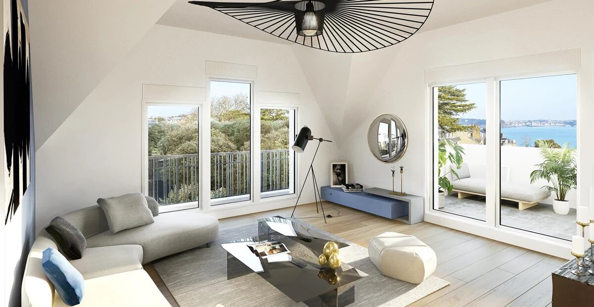 L'architecture, fidèle au style balnéaire, se distingue par des lignes traditionnelles et une implantation en hauteur offrant à certains logements des vues surplombantes sur Dinard et la baie du Prieuré. 🌅