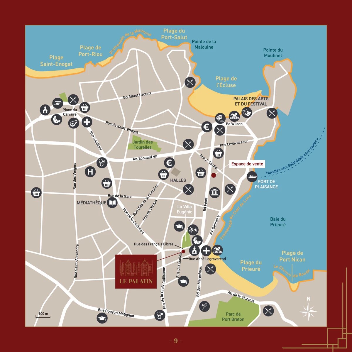 Située 11 rue des Écoles, dans le quartier prisé Prieuré – Eugénie de Dinard, la résidence Le Palatin incarne le charme authentique des villas dinardaises. 🏖️