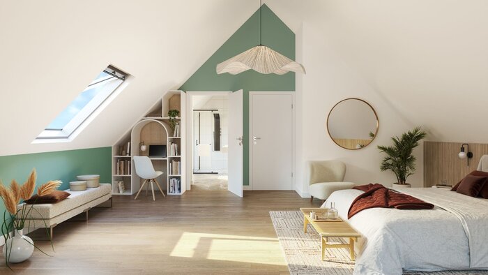 L’architecture s’inspire du patrimoine local avec ses toitures en ardoise, son bardage bois et ses teintes naturelles qui s’intègrent en harmonie dans l’environnement. Construit avec une ossature bois et répondant aux dernières normes environnementales, le programme assure un confort durable et une performance énergétique exemplaire, gage de pérennité et de valorisation patrimoniale. 🔄