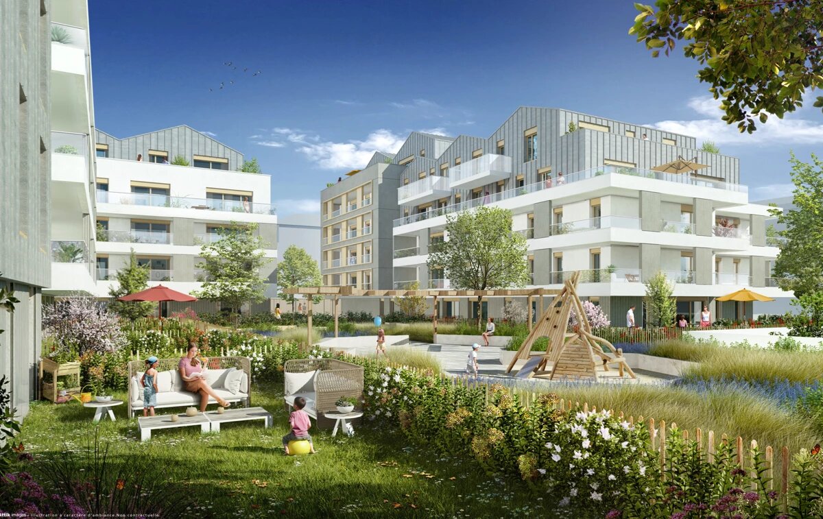 Le cœur d’îlot, conçu par un architecte paysagiste, propose des espaces de convivialité favorisant les interactions entre les résidents : potager commun, espace de rencontres, jeux pour enfants, maison d’assistantes maternelles au rez-de-chaussée du bâtiment C, local vélo et atelier partagé dans le bâtiment B. L’accès à ce jardin clos est sécurisé, offrant ainsi un lieu de détente et de partage en toute tranquillité.