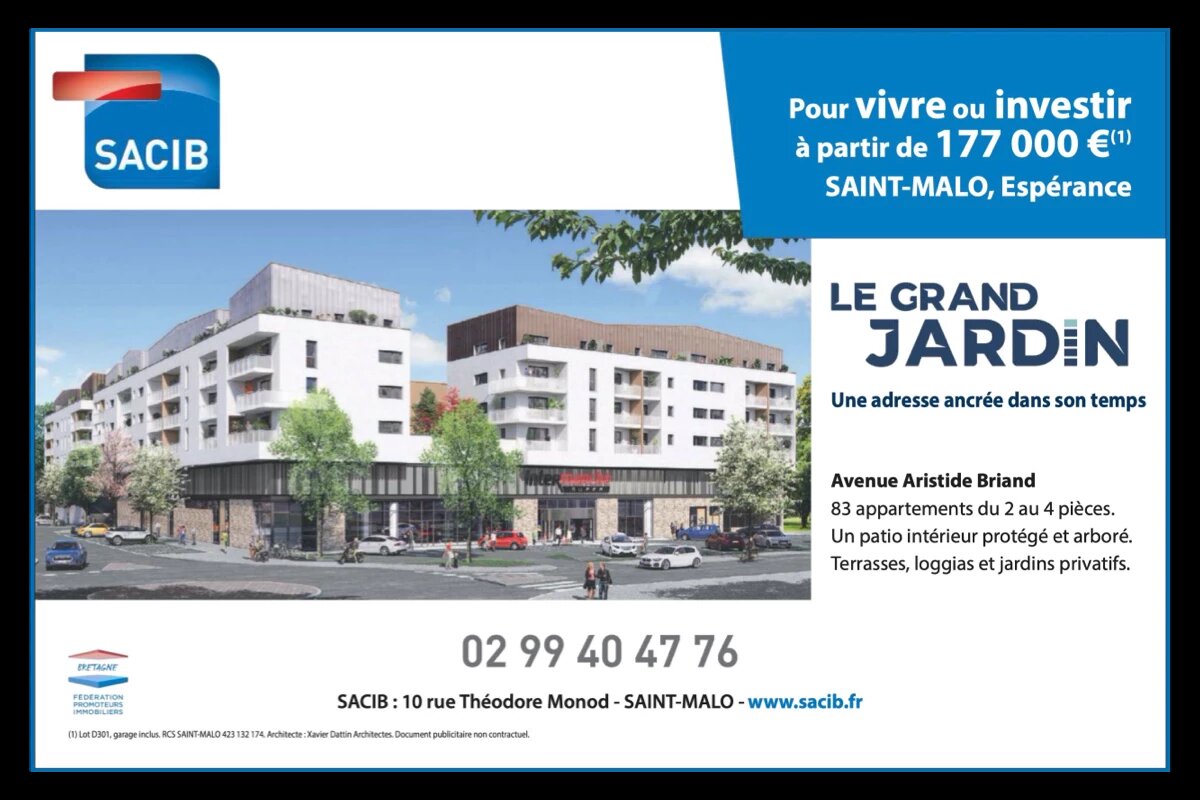 Découvrez Le Grand Jardin, une résidence contemporaine de 83 appartements du T1 au T5, idéalement située au 53-55 avenue Aristide Briand, dans le quartier dynamique de Gare-Rocabey à Saint-Malo. 🏙️